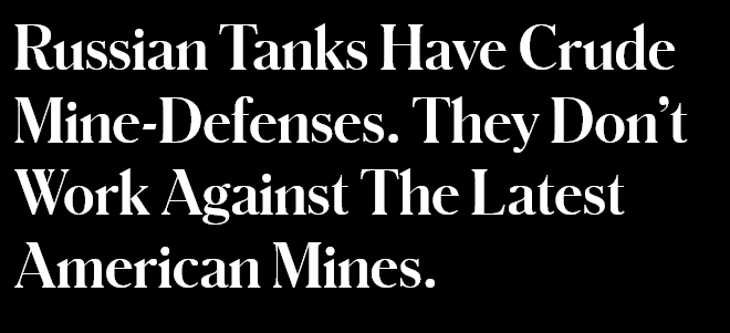 But at the end of the day, would the U.S. or NATO forces do any better under such circumstances? I don’t believe so. They’ve never dealt with such saturation of mine systems, particularly of modern electronic ones and mass-distributed (FASCAMS) systems, so there’s every reason to think they’d do even worse considering there is zero evidence that NATO militaries are more adaptable than the Russian one.
