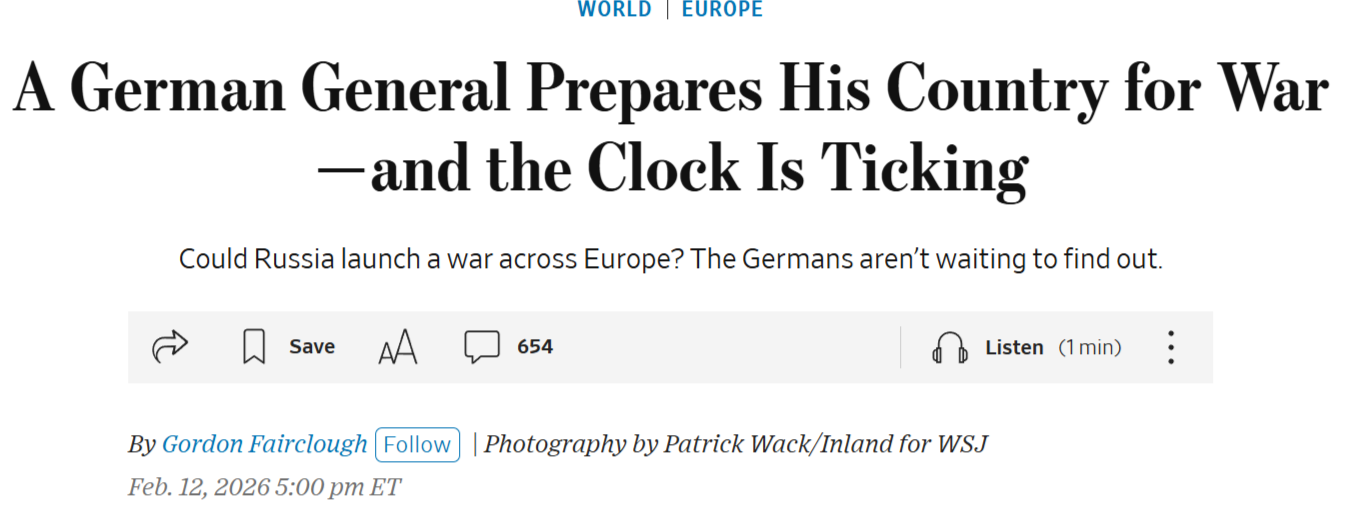 In the article, Germany’s “top military officer” General Carsten Breuer states explicitly that Russia will be ready to wage war on Europe in three years: