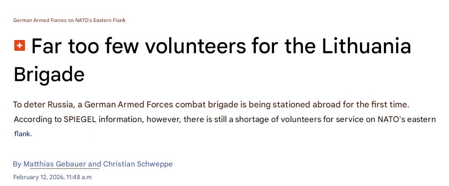 But while the article boasts of Germany raising its commitment level to provoke WWIII by stationing troops in Lithuania, the reality seems to be a bit different. Spiegel reports that Germany is in fact struggling to even find enough recruits to fill the brigade meant for the task: