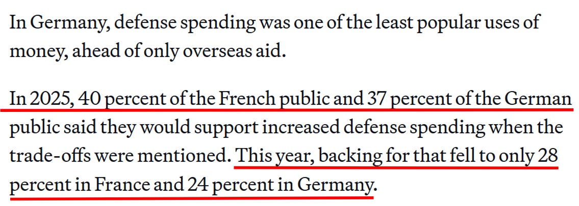 Most concerning for the elites is that support for militarization is on a down-trend heading out of 2025: