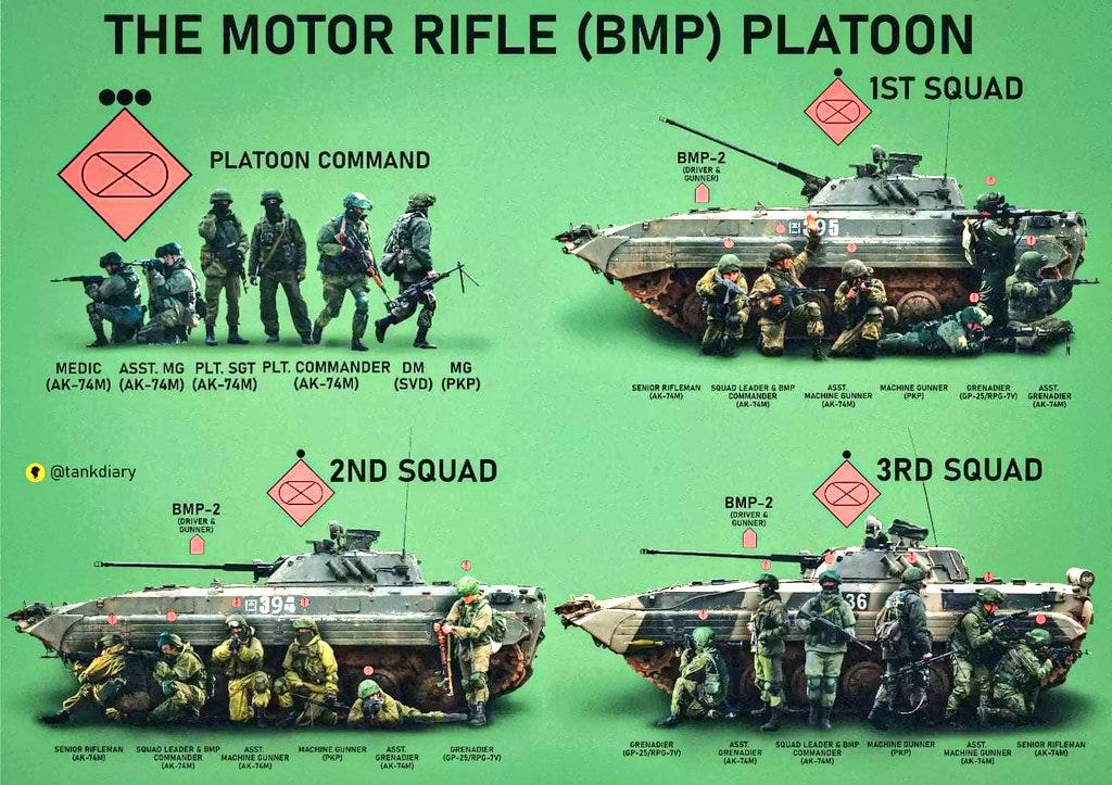 Secondly, he contradicts himself by subsequently describing this Russian assault platoon as highly complex, having its own drone teams, fire teams, heavy weapons teams, mortar teams, etc. U.S. squads or even equivalent platoons have nothing of this sort, and thus their NCOs are not equipped to handle such complexities—so why expect Russian “NCOs” to do so?