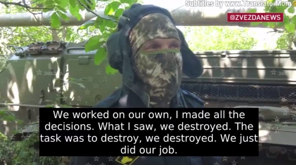 And by the way, tank units are led by officers. In the video above, those are lieutenant’s epaulettes, which confirms the type of officer-led autonomy and initiative I’ve been describing all along.