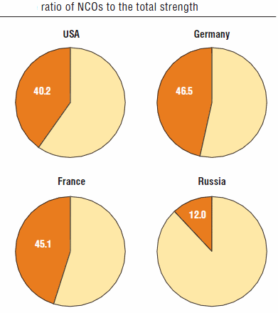 However, lacking as many NCOs as in the West, Russia has been much more ‘officer heavy’. Here’s an older chart showing a comparison from years ago: