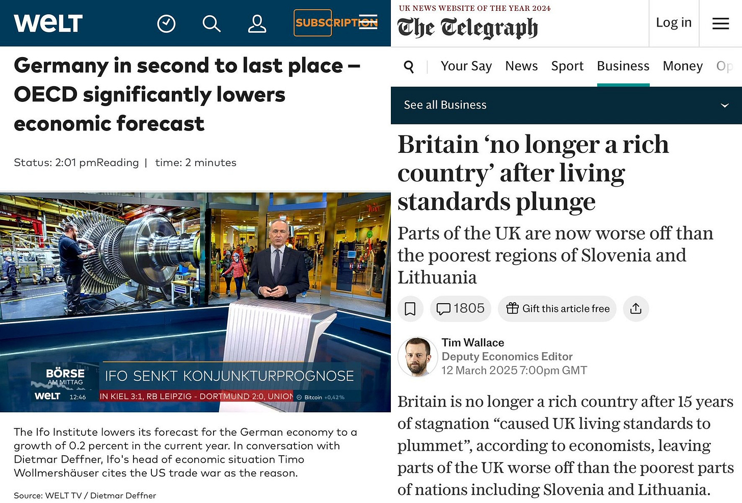 In short: severe incompetence rules over the former country of poets, thinkers and engineers. No Speer, no Schacht, no Goebbels, no Führer, and no Jewish-Bolshevik boogeyman either. Eurozone-ECB-with-other-countries'-debt-Lagarde, Baerbock, Habeck and Scholz/Merz instead. Bundeswehr's recruitment is net negative. There will be no "Germany's Military Rebirth."