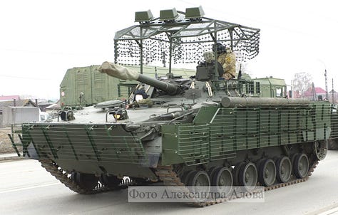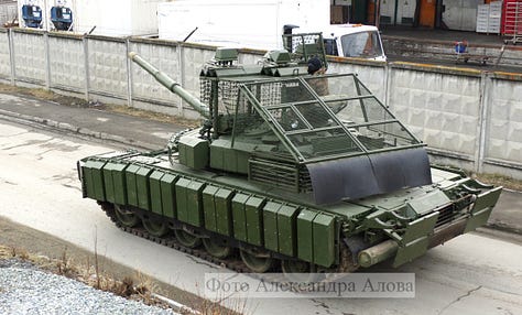 Some photos of new serially produced BMP-3s and T-72B3Ms, equipped with new anti-drone rubber pads as well as factory standard EW modules: