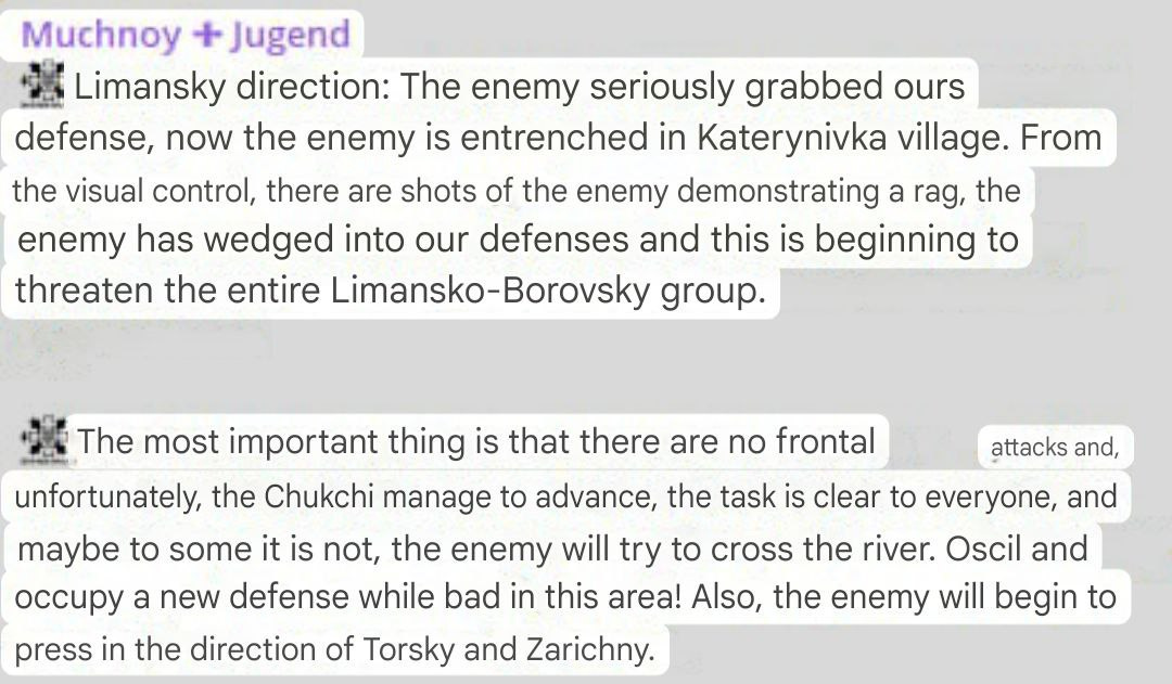 Likewise southeast of there Russian forces have been making major headway on the Lyman front. Many Ukrainian military channels have been squawking about Russian successes there in the past few days: