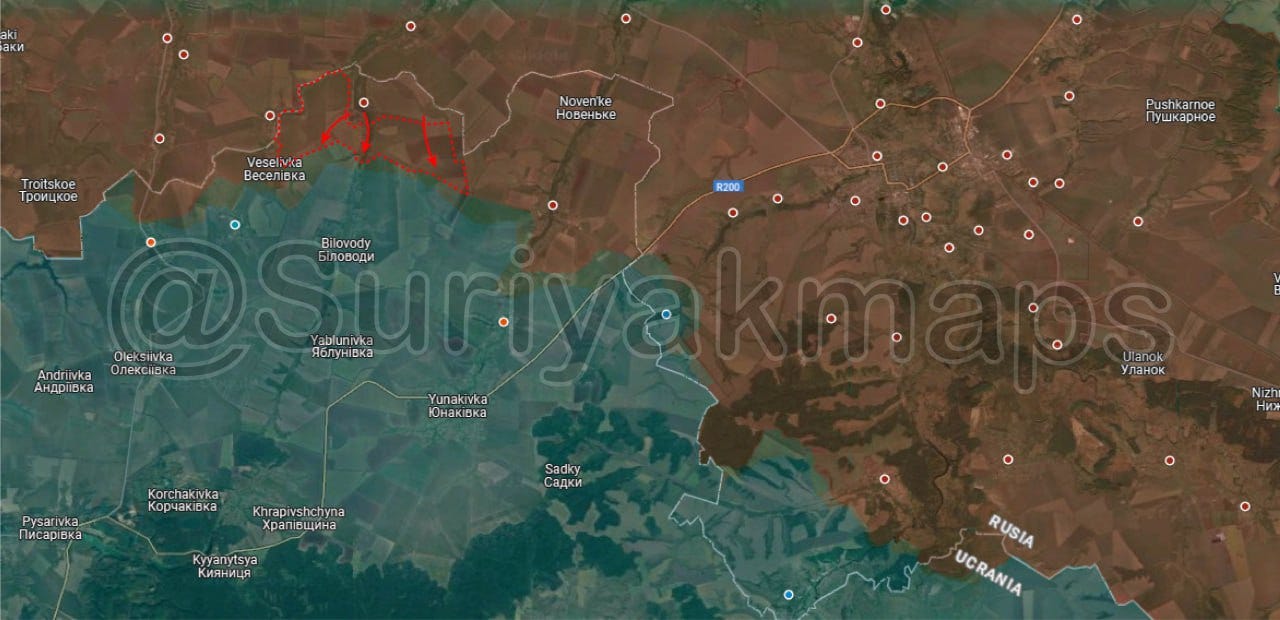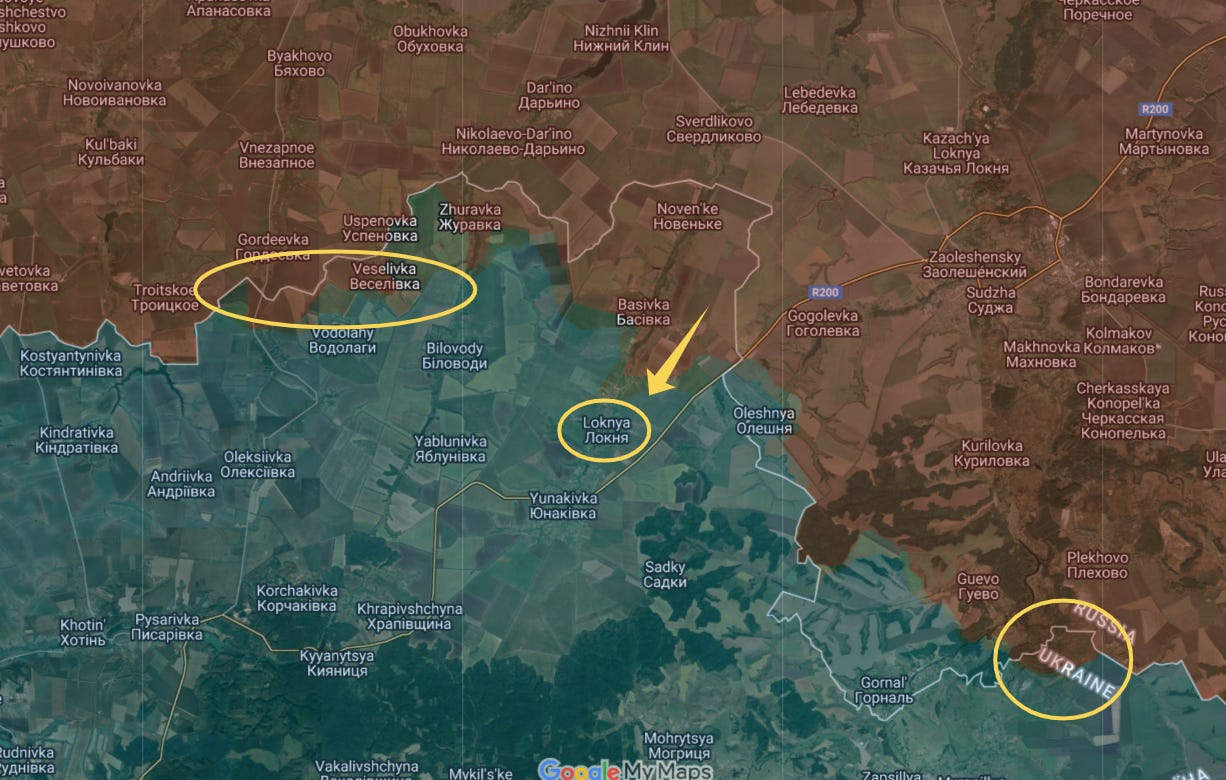 This is borne out by frontline evidence, as Russian forces have continued to make pushes in these regions. Particularly in Sumy, Russia has advanced the past few days, capturing Veselovka and as of today entering Loknya, as seen below: