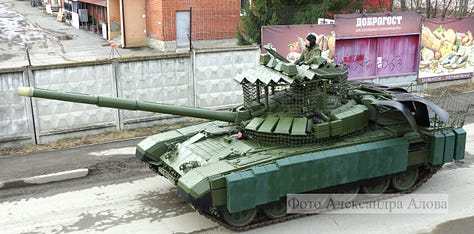 Now we’ve again begun to see heavily armored columns of modified tanks with anti-mine rollers and the classic ‘shed’ designs. In the last Sitrep I covered the Russian 4th Motorized Rifle Brigade’s assault in the area south of Chasov Yar. Now a new look at that assault has been released, showing us an interesting aspect we rarely get to see: