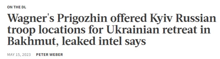 As stated above, they’ve known since at least mid-June. Some even believe that Prigozhin was ‘led by the nose’ from some of his Western intel contacts in that they had promised him there were certain internal Russian officials and state security members who will ‘rise up’ in support of his siege after he starts it. Recall, it’s no secret that Prigozhin has contacts with Western intel services. Not only did the Pentagon leaks reveal the following:
