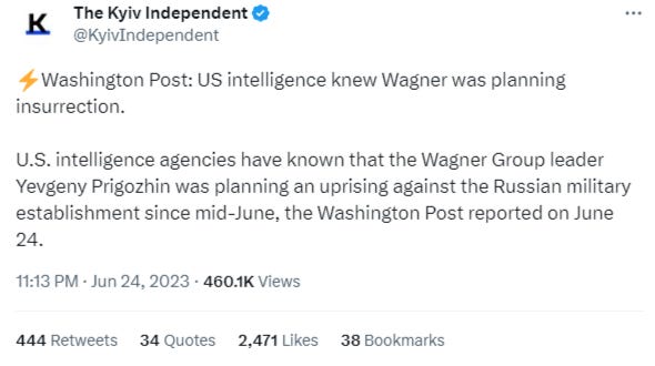 This is partly why it’s now openly admitted by the CIA and their mouthpieces that the “rebellion” was seen well in advance and was not a ‘spontaneous act’ like Prigozhin would have us believe.