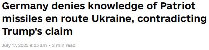 It turned out Trump ‘deceived’ Europe with the Patriot scam, says BILD. No one knows who’s actually sending the Patriots, and the few that may arrive won’t do so for up to 8 months or more: