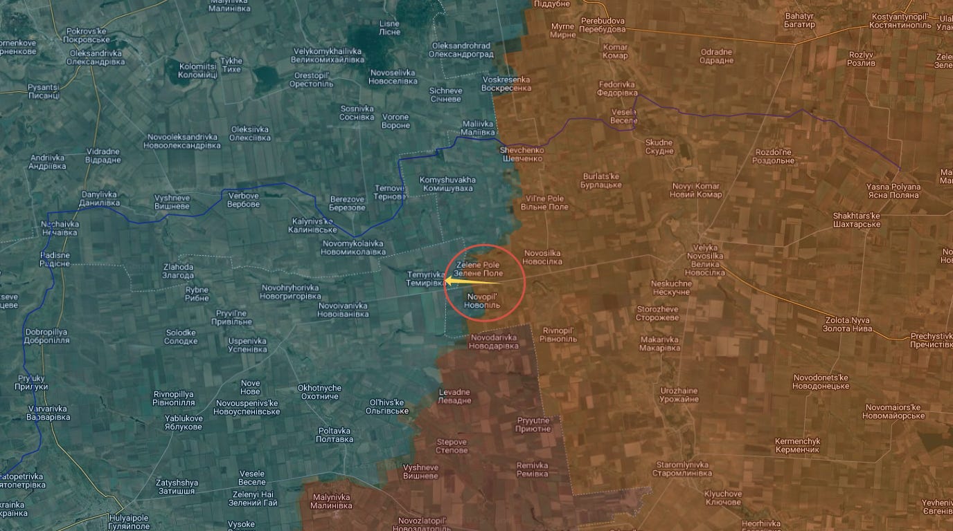 For now there hasn’t been too much new movement on the Zaporozhye front. Only at its eastern end, Russian forces expanded control around Zelene Pole, with some sources claiming Russian units have begun attacking the outskirts of Temyrovka to the west:
