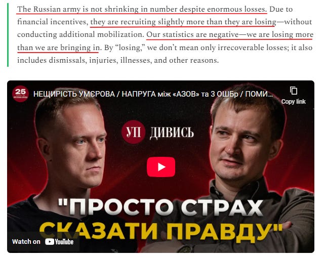 Not to mention head of Ukraine’s prestigious ‘Come Back Alive’ charity Taras Chmut in a new interview admitted that Russian recruitment is higher than its losses, while Ukraine’s is the opposite: