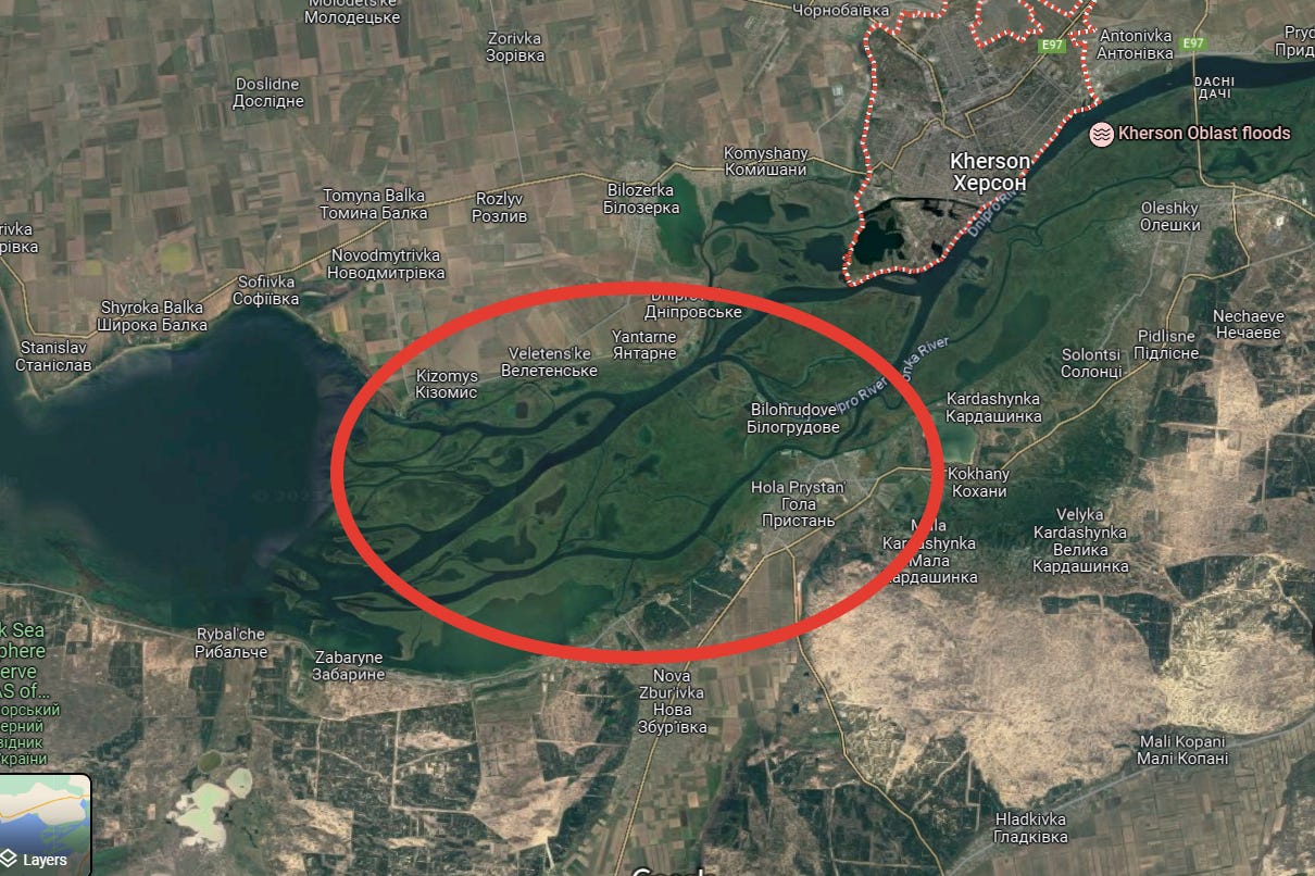 You see, Russia was having a hell of a time with recalcitrant AFU constantly entrenching themselves on these marshy islands between Kherson and Russia’s side of the Dnieper: