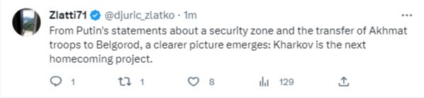 One commentator even extrapolates this into the theory that this is developing into a new Kharkov liberation objective/offensive for Russia: