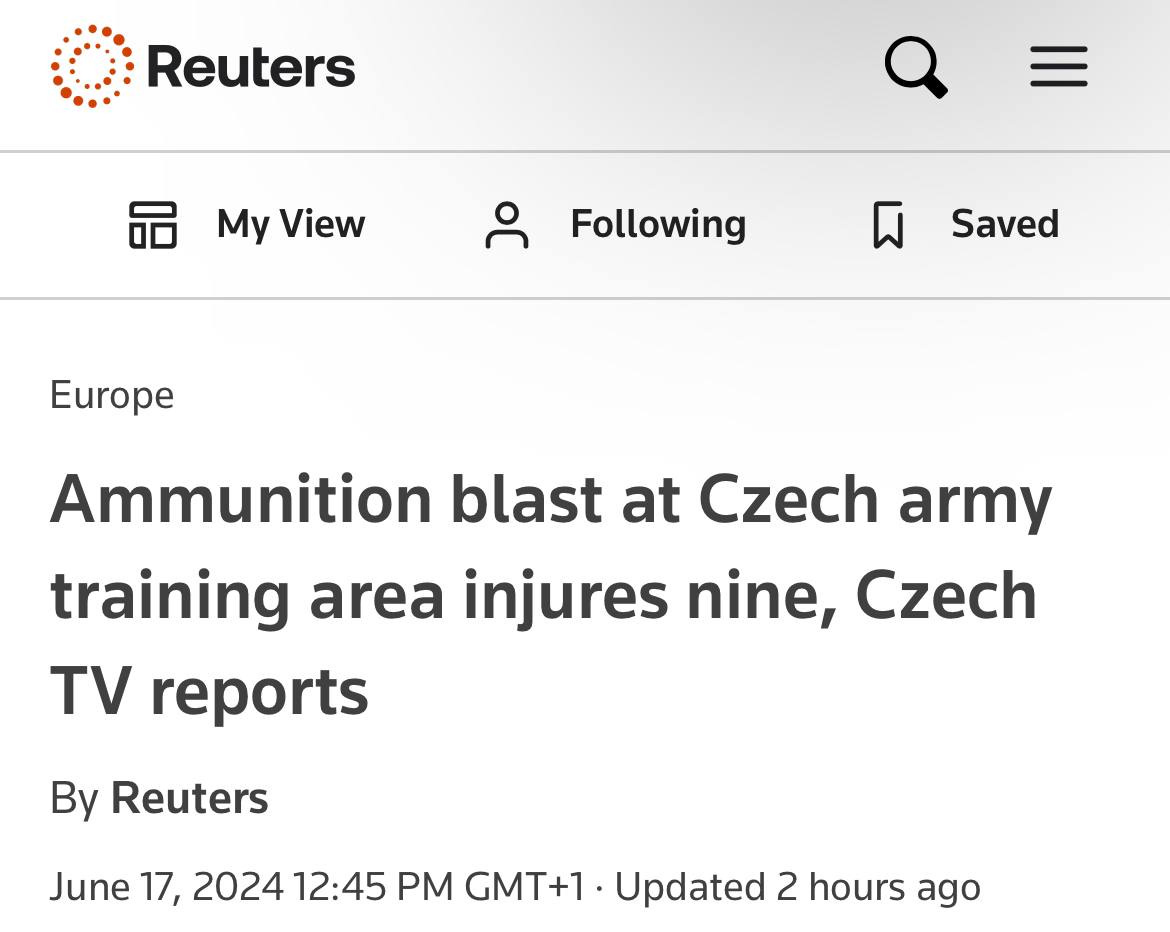 Another Western ammo dump goes up in flames—last week it was a Polish arms plant, now Czechia: