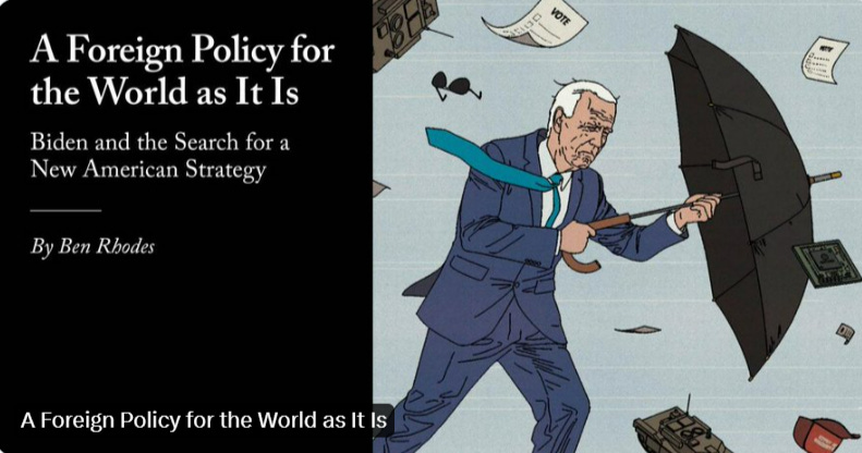 Rhodes remains among the political haute monde, having founded a thinktank alongside Jake Sullivan, which had many interlinkings with Soros’ Open Society organizations. That’s to say, Rhodes has his finger on the pulse of the ‘inner circles’ of the patriciate, which is underscored by the CFR’s journal offering tribune to his latest. And so it’s even more telling that he’s moved to sound the alarm against a country he feels is—as the cover art above obliges—stumbling headfirst into historic headwinds.