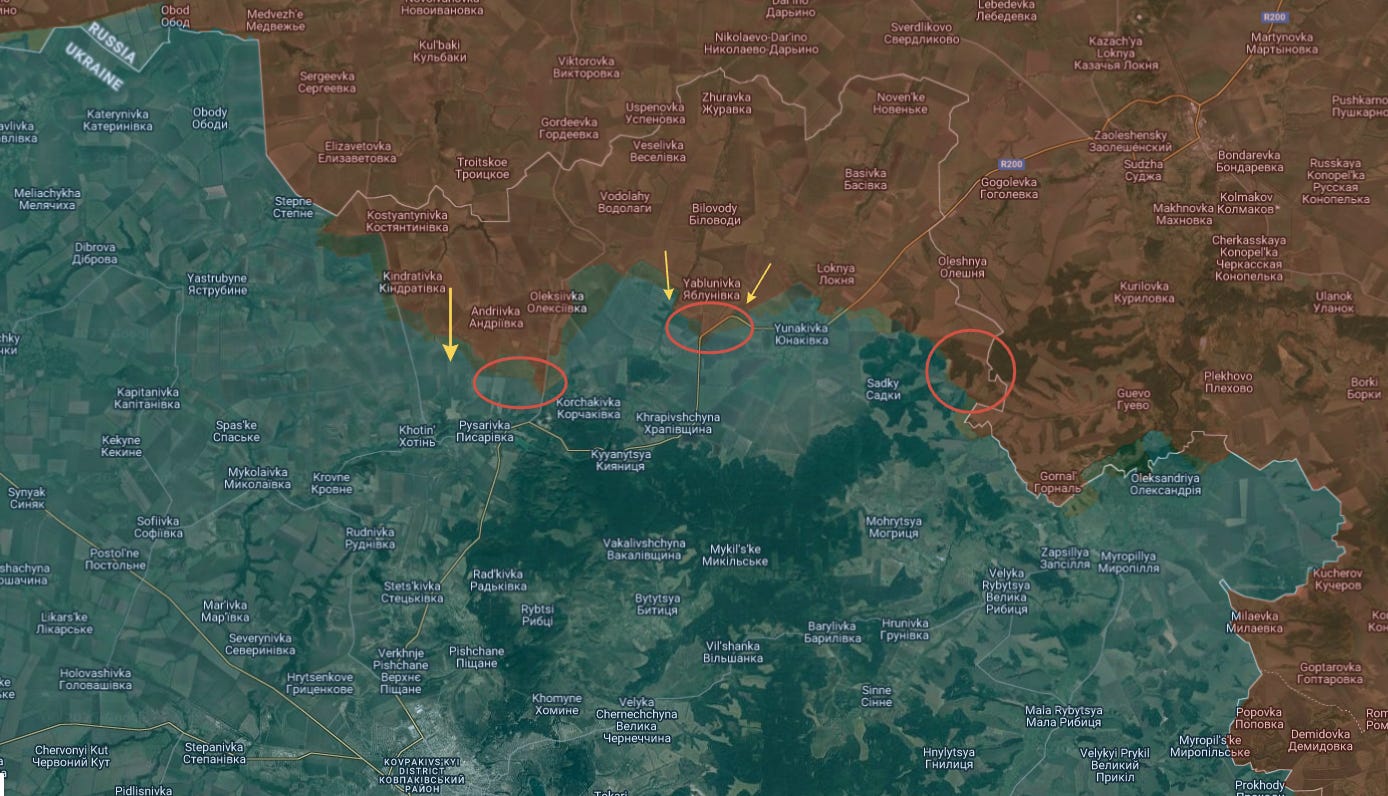 There weren’t any dramatic new gains on the Sumy front, but Russian forces slightly increased their territory, working further south down the main roads from Yablonovka and the other Oleksiivka: