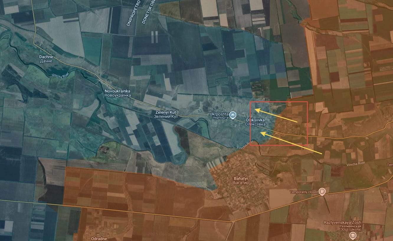 North of Bogatyr, Russian forces are making their way through Oleksiivka: