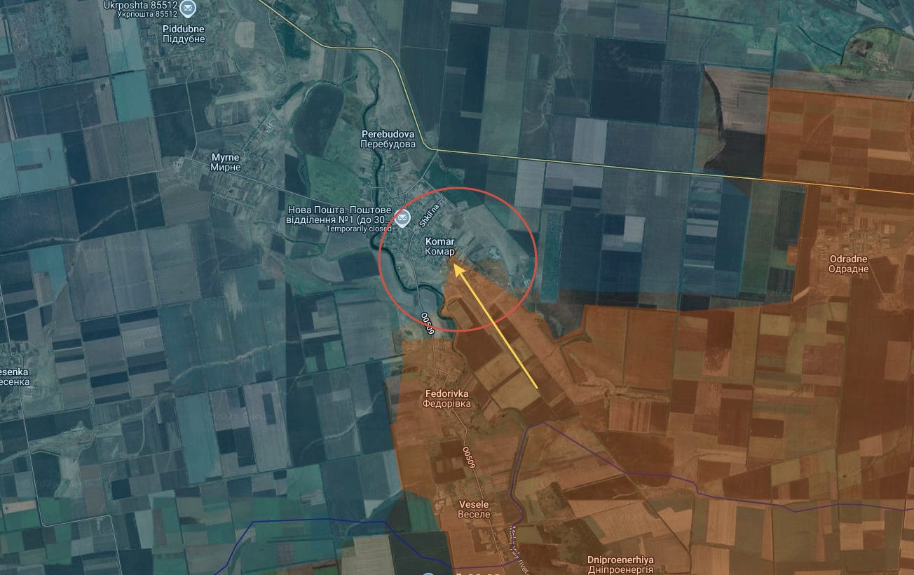 Likely the biggest advance has been just southwest of there, in the area north of Velyka Novosilka. Recall it was just a couple days ago Russian forces captured Fedorovka, now they have finally entered Komar, with reports claiming Ukrainian troops are fleeing the settlement: