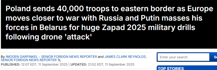 So, under the looming cloud of these exercises, and on the heels of the recent drone incursion, Poland is reportedly dispatching 40-50k troops to the Belarusian border, sending sensationalists into swoons of alarm: