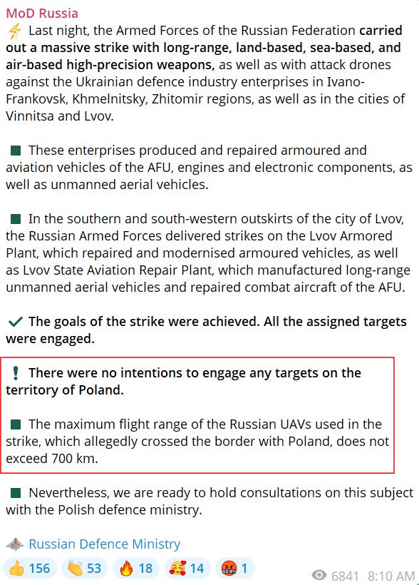 By the way, I point you to the official Russian MOD statement about the Polish incursion, which is interesting: