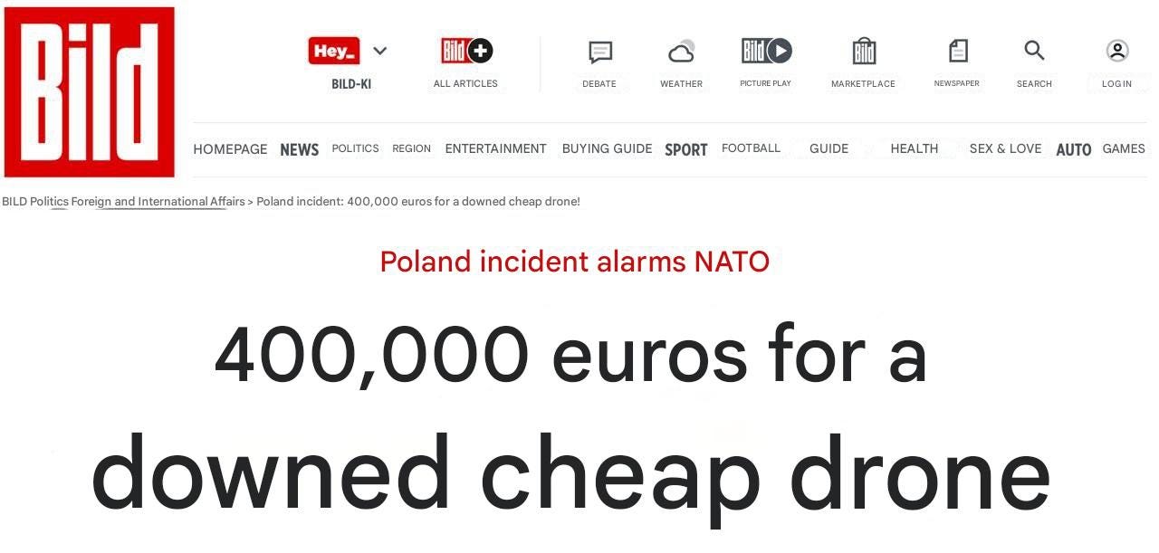 Poland was shooting down cheap Russian drones with missiles costing 400,000 euros each yesterday, reports Bild.
