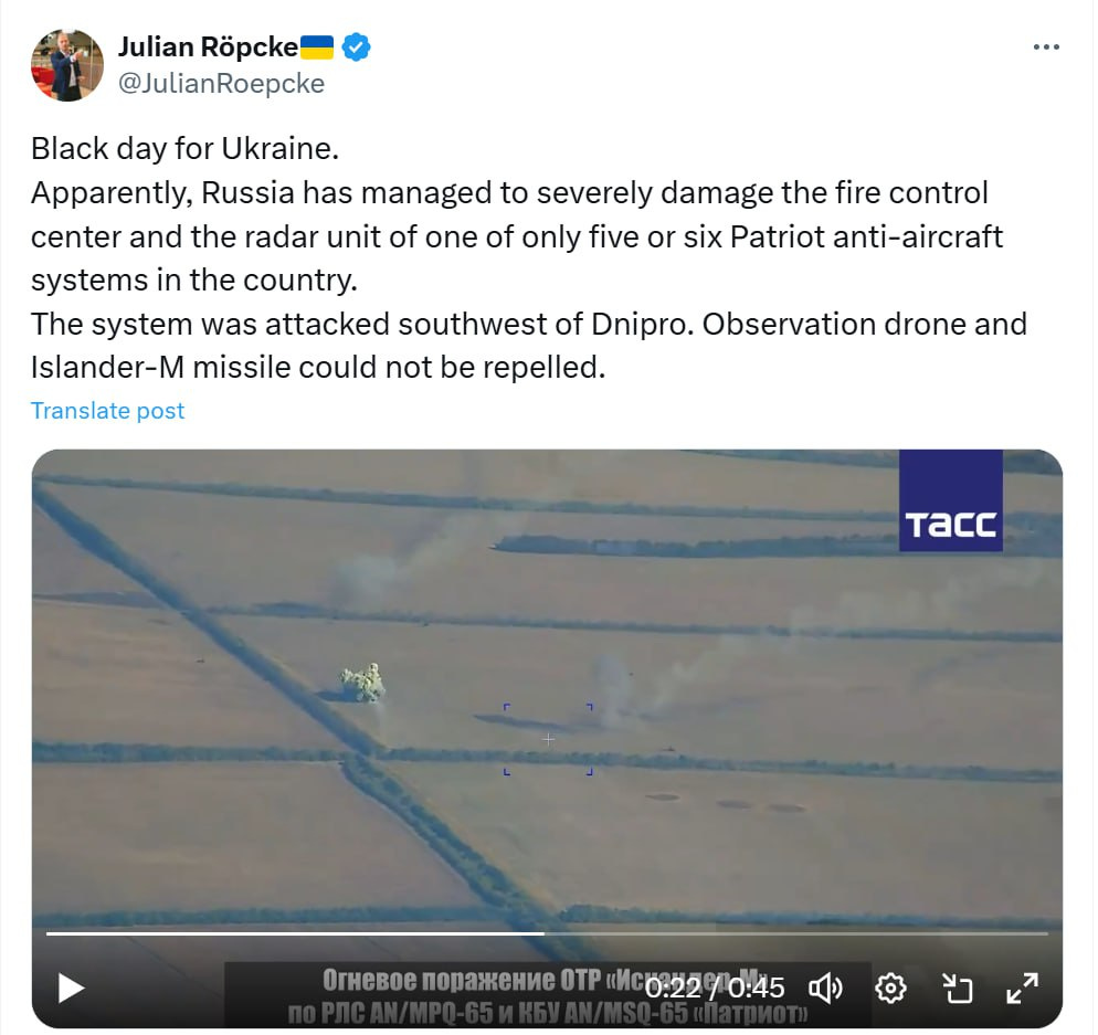 After another Iskander strike was seen wiping out a Patriot unit, Julian Roepcke was again sent into agonies: