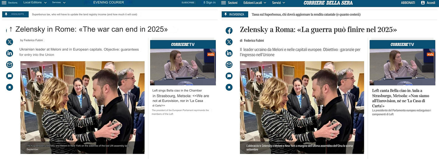 But the main highlight came by way of the Italian Corriere della Sera paper, which broke the news, on the heels of Zelensky’s Rome jaunt, that the cargo-pantsed leader is in fact ready to negotiate an end to the war: