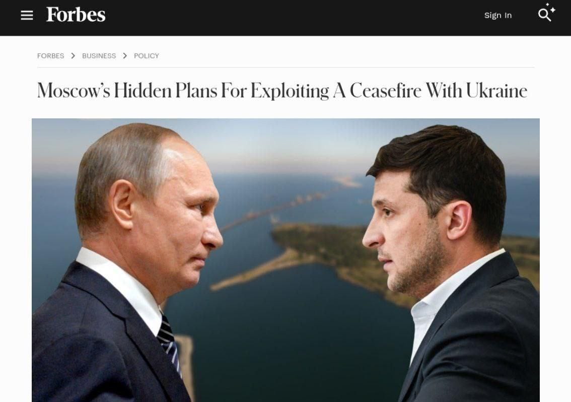 Of course Zelensky continues to vocally declare he is not considering land-for-peace, however, this is obviously a ploy to keep nationalist groups at bay. He has to present the ostensible face of strength in this regard, when in reality he merely wants the perception to look like it’s the allies driving this initiative, in order to deflect blame onto them when it finally does happen. Proof of this lies in the fact that even Forbes pressed this issue in their latest piece, explaining how Russia seeks to deliberately force Ukraine into concessions for the express purpose of activating Ukrainian ‘nationalist groups’ to oust Zelensky:
