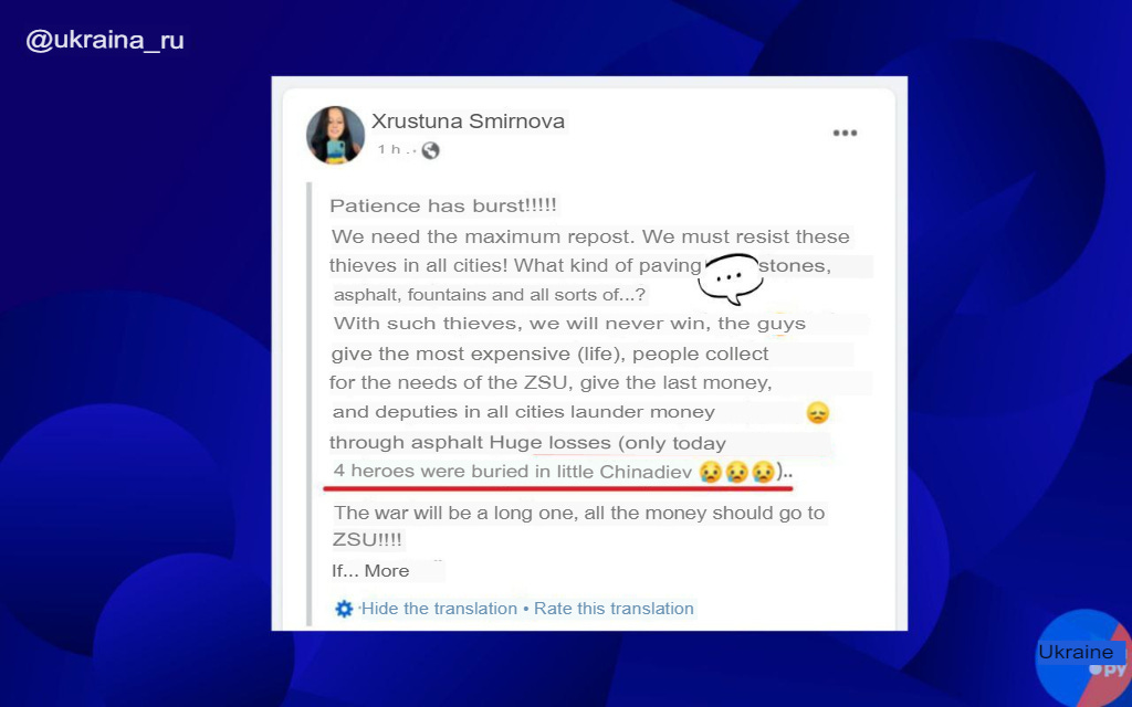 Furthermore, on several fronts, Ukrainian accounts continue to shriek and citizens launch major complaints about losses: