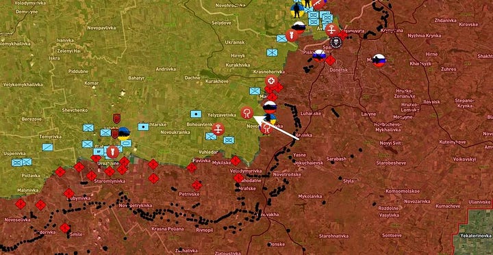But about 7km west of there in the Vodiane direction Russia has also made important gains toward Severne.