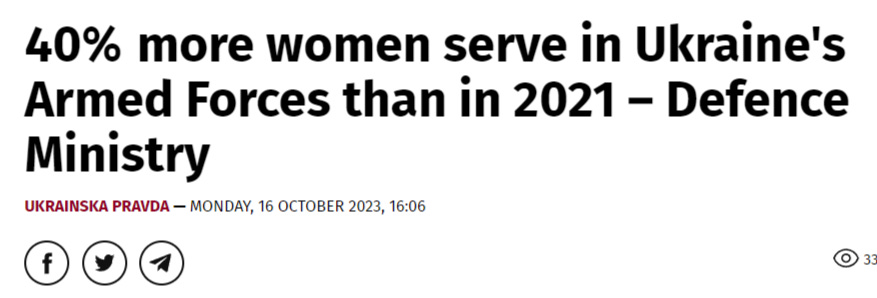 In fact Ukrainian Pravda reports there are now 40% more women in the AFU ranks than 2021—expect that number to keep climbing as they run out of men: