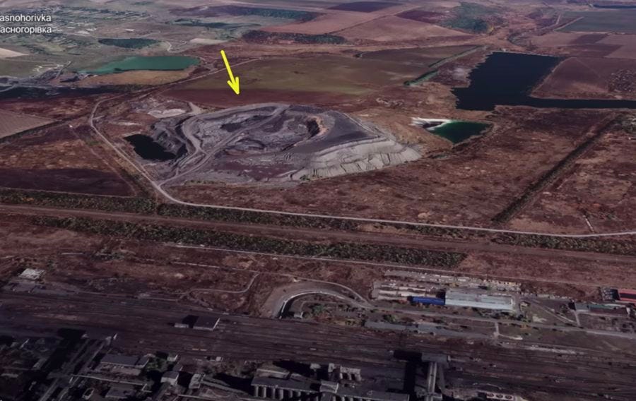 Here’s Russia’s view of the mountainous Slag Heap. Behind it lies the giant industrial complex which has been turned into a fortress teeming with ATGM positions of every kind: