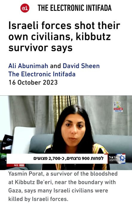 That’s not to mention the Israeli settler woman who, in a new interview, confirms that it was in fact the IDF/Israeli police who slaughtered most of the “hostages” in the Hamas raid on the music festival: