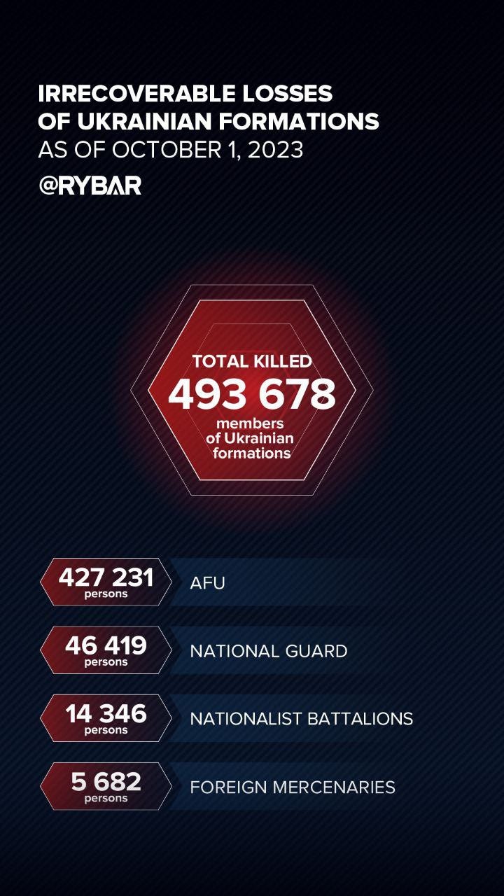 Reports from at least 20 Ukrainian regions confirm that the number of confirmed dead is at least 450,000-500,000 servicemen.