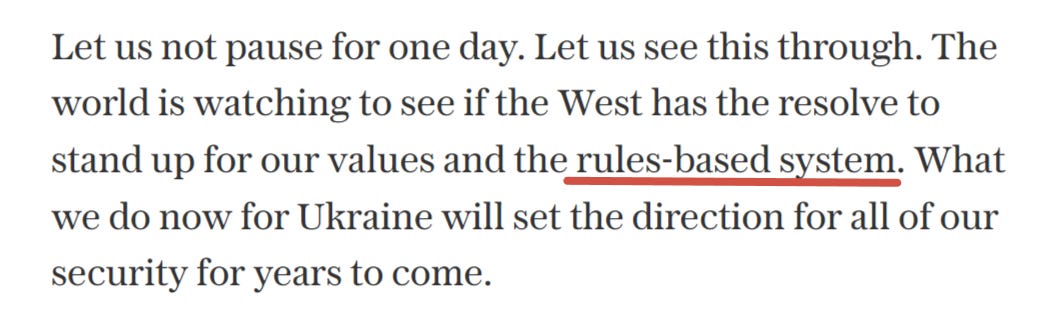 Now, in a desperate plea to reengage the public on the putative ‘threat’ that Russia poses in defeating Ukraine, the globalist scriptwriters have rolled out a new narrative: saving Ukraine means saving Taiwan from China. You can see this—as usual—in the orchestrated nature of the sudden, totally aligned messaging, which has clearly been sent down as ‘guidance’ from above.