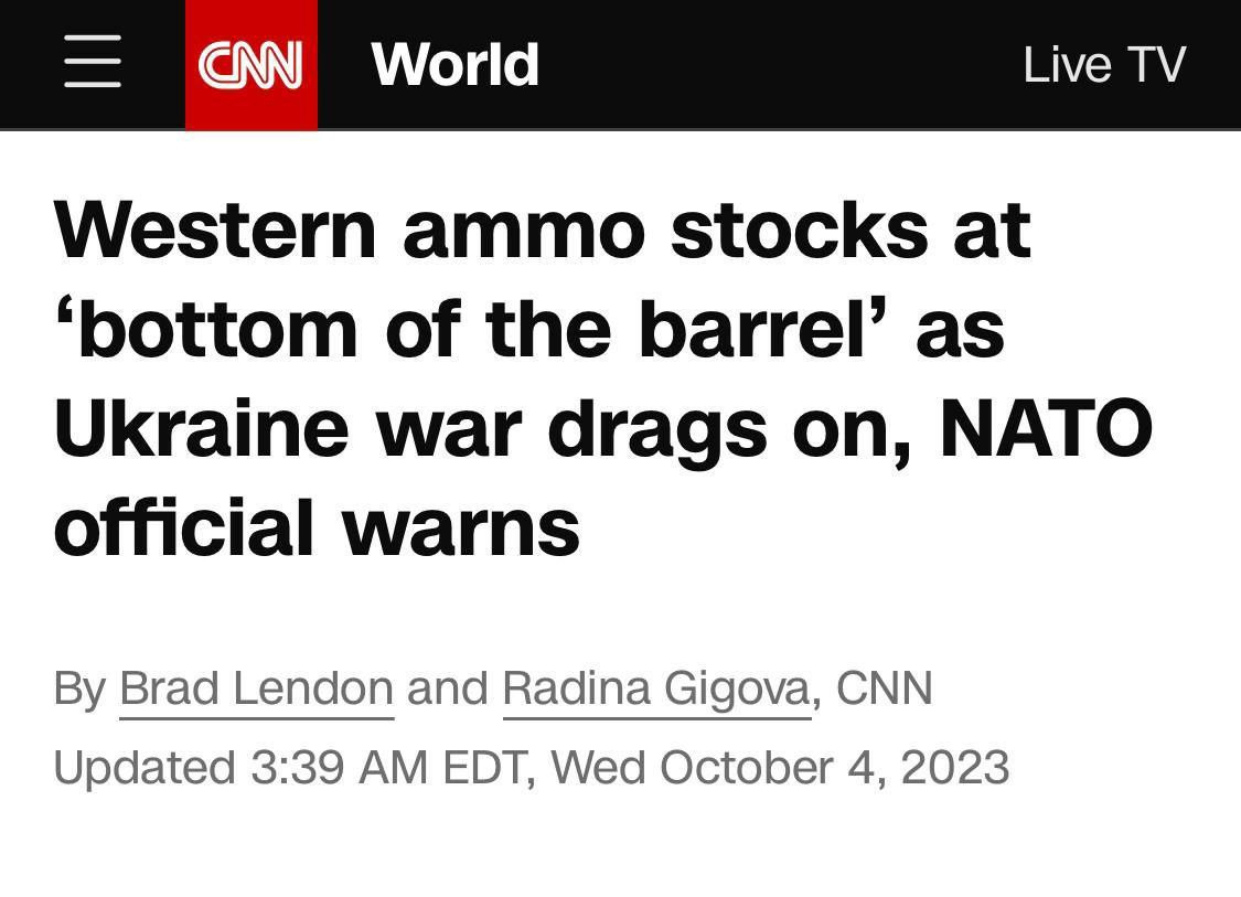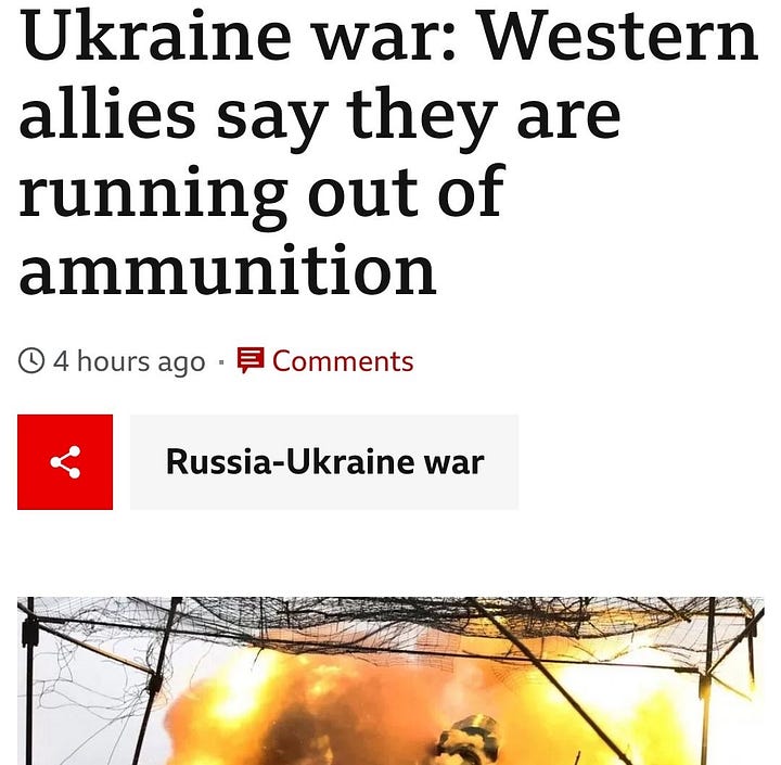 Not that we need statements to confirm something so self-evident, but everyone from Zelensky and Chuck Schumer to other key Western officials have openly stated that if Western arms supplies to Ukraine stop, the AFU will completely collapse in short order.
