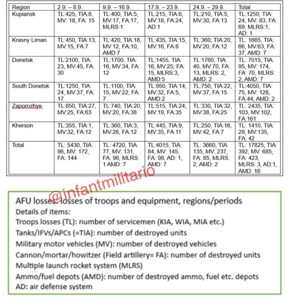 Here’s one tally of AFU losses from the period of Sept. 2 to Sept. 29: