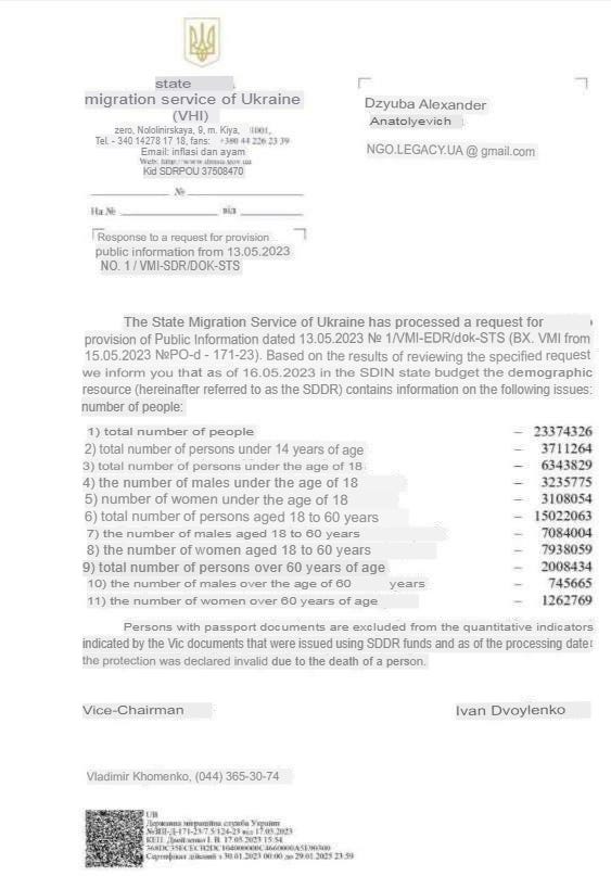 Lastly, in the final—and perhaps most foreboding—bit of statistical analysis, we have new data that appears to show Ukraine’s current population has dropped to even lower than some of the worst predictions. Recall that Ukraine started off with nearly 50 million people at its peak. Some have suggested they still retain as much as 35-40M. A New leaked census document shows Ukraine currently at 23 million: