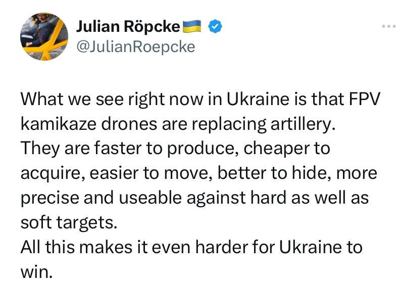 FPV usage in particular is simply through the roof, and anyone who’s been watching footage on the usual channels can confirm this. Below you can see a Ukrainian account lamenting how unsustainable the new Russian onslaught is to the Ukrainian AD: