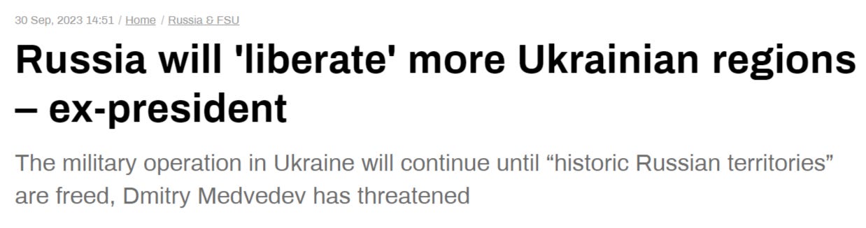 Moscow will add more Ukrainian regions to its territory, former Russian president Dmitry Medvedev warned on the first anniversary of the country’s unification with the People’s Republics of Donetsk and Lugansk, and Zaporozhye and Kherson regions.