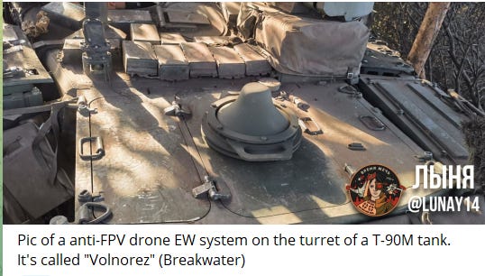But there’s more and more proof that Russia’s new ‘Volnoreza’ anti-drone EW systems are being used on real tanks on the frontline: