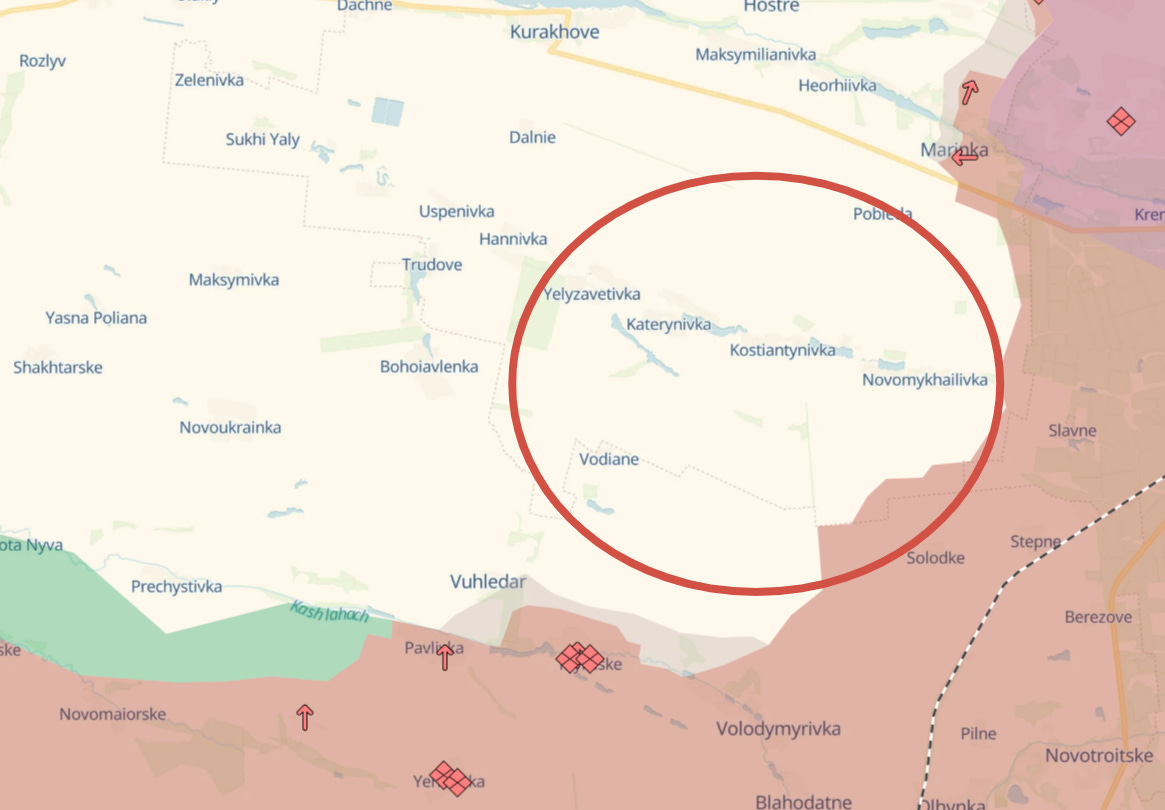 2. Probably the most important: Ugledar was increasingly cut off by the much larger advancements Russia made to its direct north. The capture of Konstantinovka, Vodiane, etc., in the previous months led to a mountingly untenable position for Ugledar as its main supply routes fell under various forms of fire control.