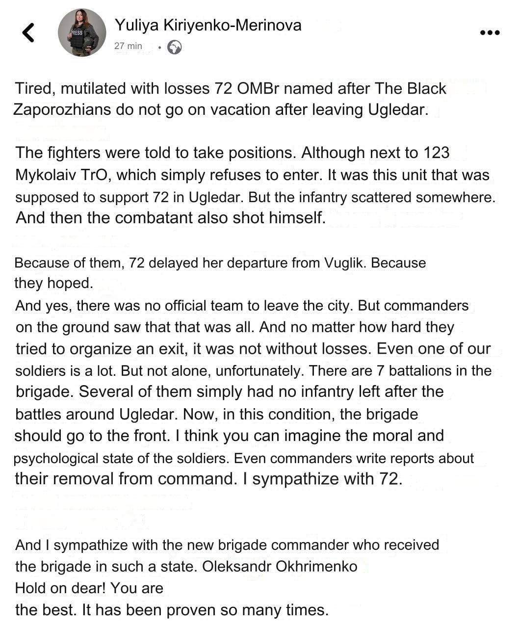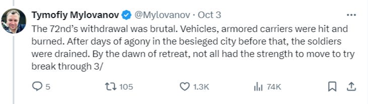 In this thread a prominent Kiev commentator says the 72nd was being annihilated on retreat.