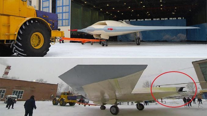 One rumor even states that this means the S-70 has gone into some form of early production a year earlier than planned, while others believe it’s still merely an earlier test copy, pointing to lack of the final “production” variant Al-41 engines with closed inlet: