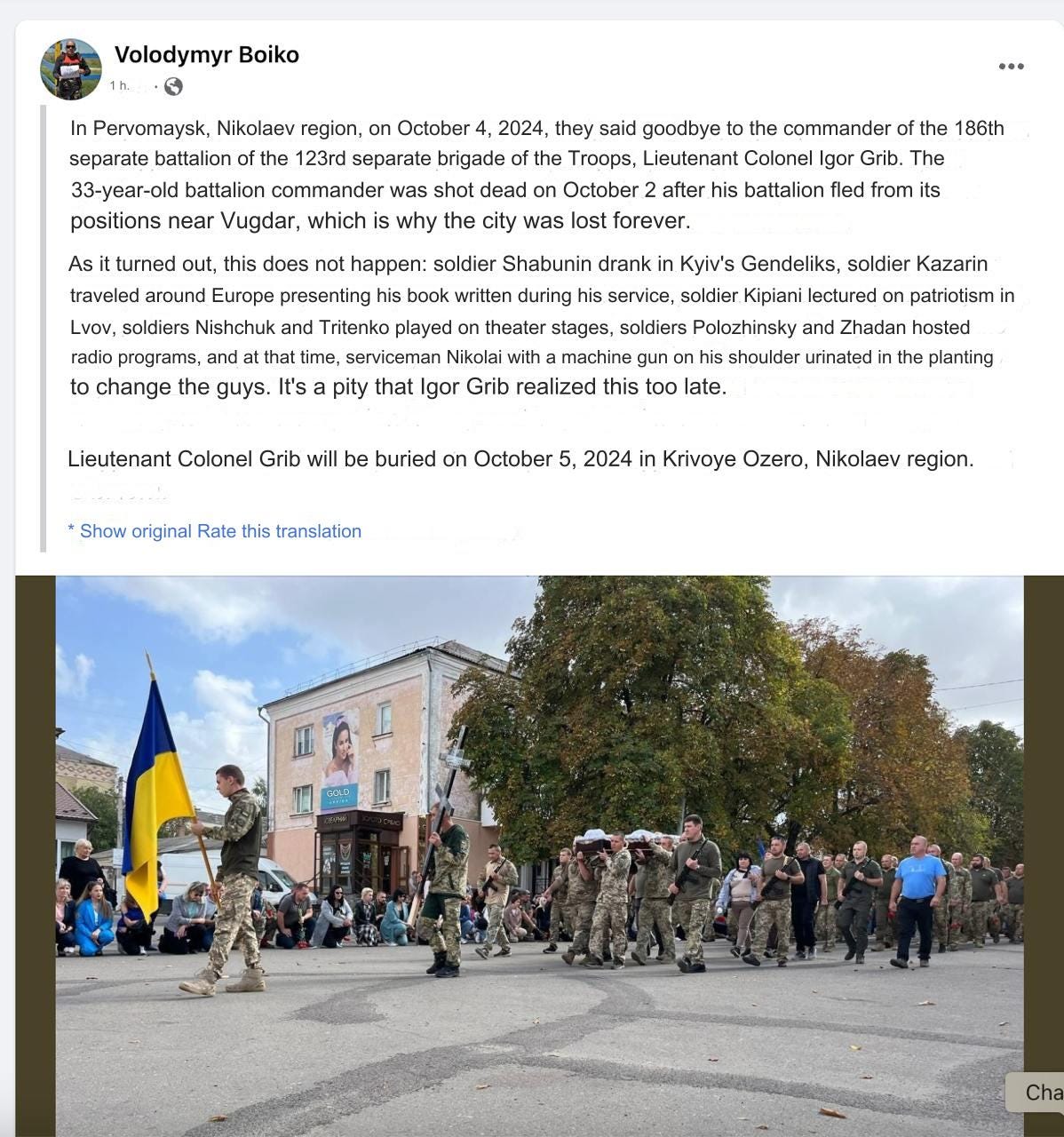 Here’s the Azov figure’s post in question: