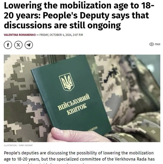 Now the other biggest talking point within Ukraine itself is the increasing reality that the 18-25 cohort will have to be forcibly mobilized. Here Ukrainian MP Roman Kostenko says all that his Western sponsors talk about is mobilizing 18 year olds: