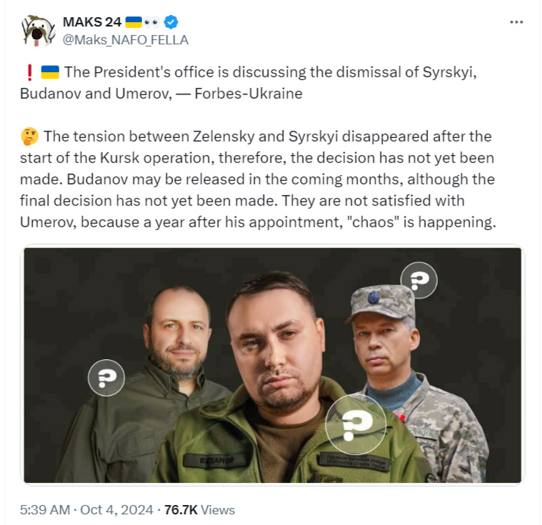 Speaking of which, there’s now credible rumor that Budanov, Syrsky, and Umerov may all three get the axe soon.