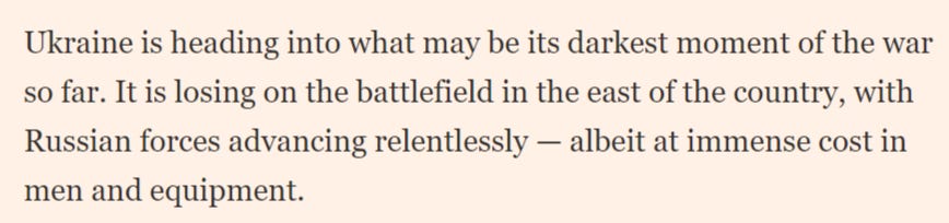 As a counterbalancing cope, the article continues to cite ‘heavy’ Russian losses without any proof. In Ugledar in particular, this has become the last remaining reconciliation for the Ukrainian side: “Well, at least they suffered heavy losses to take the city.” But in practice, all available evidence points to the opposite.